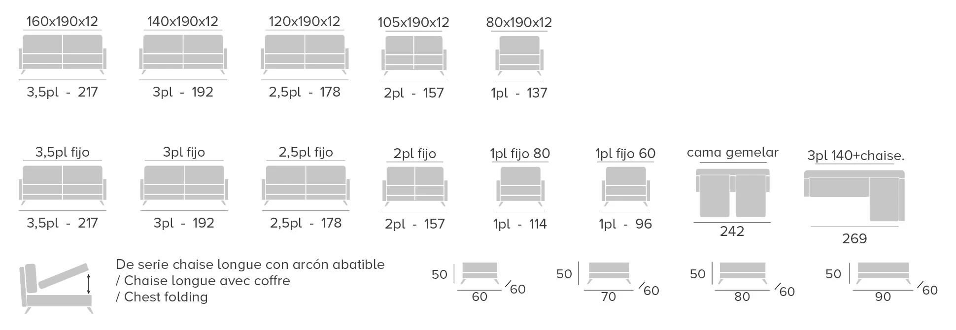- De serie colchón de 12 cm.