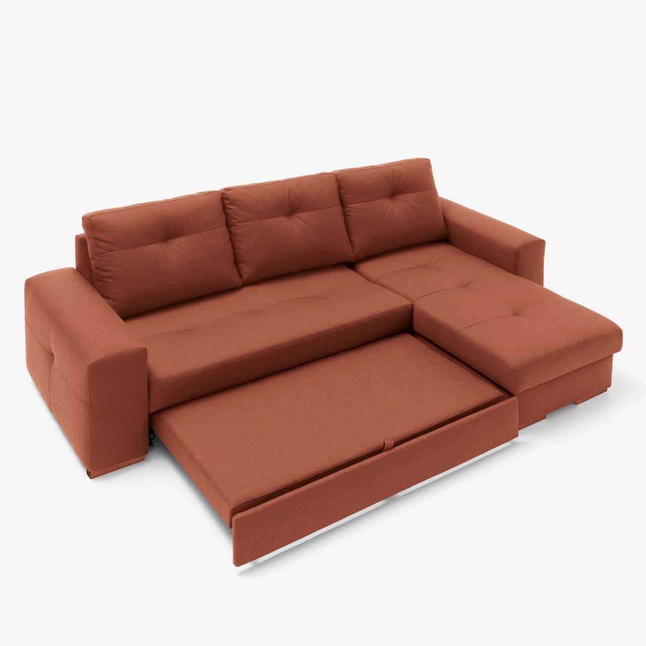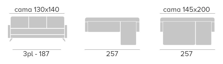 - Colchón: HR 30 kg forrado misma tela sofá.
